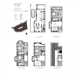 • Biệt thự đơn lập có diện tích từ 220m2.